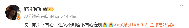 虎撲10月14日訊 S15入圍賽T1以3-1戰(zhàn)勝I(mǎi)G,解說(shuō)主持賽后熱議: