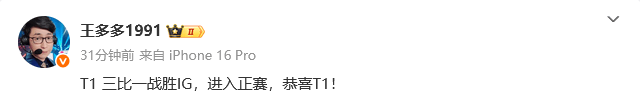 [-] T1 三比一戰(zhàn)勝I(mǎi)G,進(jìn)入正賽,恭喜T1! ???