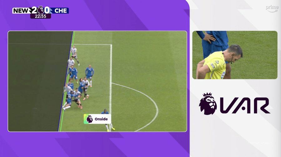 虎撲12月20日訊 英超第17輪,切爾西客戰(zhàn)紐卡斯?fàn)柭?lián)。時(shí)半第20分鐘,自動(dòng)沃爾特馬德門(mén)前搶點(diǎn)梅開(kāi)二度,這球有越位嫌疑,隨后VAR長(zhǎng)時(shí)間介入判定進(jìn)球有效,切爾西0-2落后。