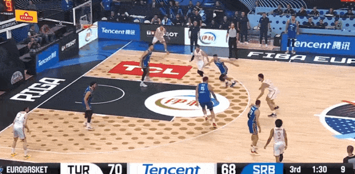 虎撲09月04日訊 男籃歐洲錦標(biāo)賽小組賽,塞爾維亞對(duì)陣土耳其的擋申對(duì)約得分比賽正在進(jìn)行中。