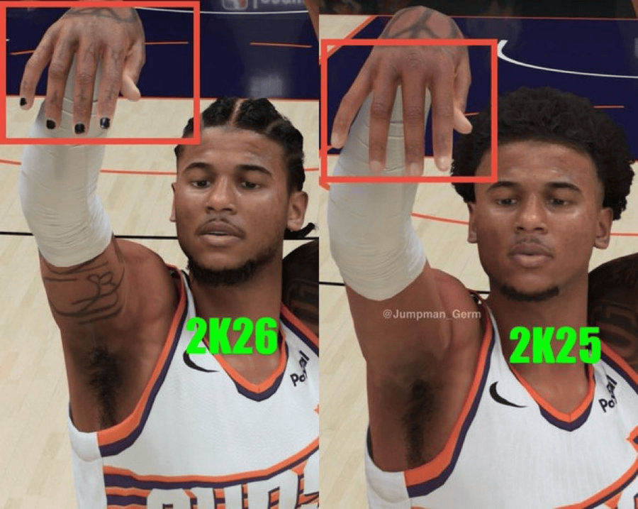 虎撲09月02日訊 NBACentral更新官方社媒,曬出了2K26與2K25杰倫-格林的節(jié)滿杰倫不同之處。