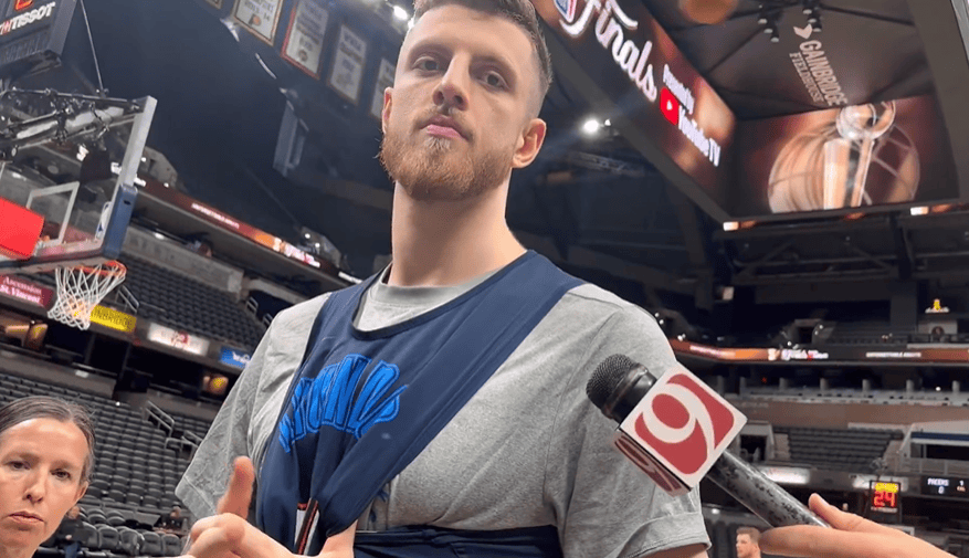 虎撲06月20日訊 今日總決賽賽前,雷霆球員哈滕施泰因接受了記者采訪。