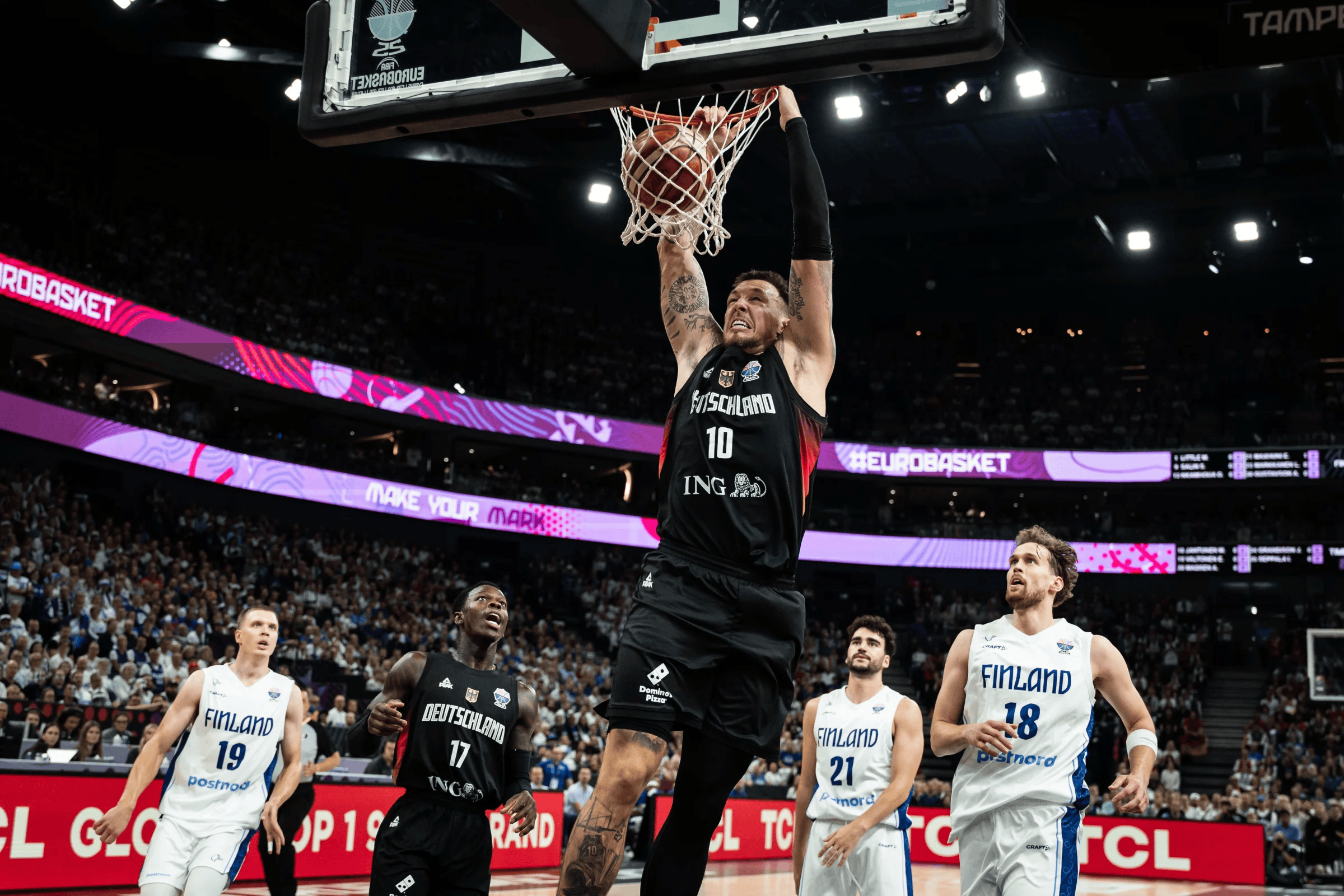 虎撲09月04日訊 男籃歐洲錦標(biāo)賽小組賽,德國(guó)對(duì)陣芬蘭的場(chǎng)出比賽正在進(jìn)行中。