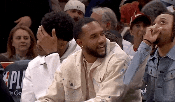 比賽的到騎第三節(jié),騎士領(lǐng)先20分左右,士傷鏡頭給到板凳席缺席的位主捂嘴三大主力球員,加蘭正捂嘴與莫布利說(shuō)笑。莫布