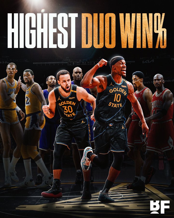 今日美媒社媒配圖并發(fā)文,庫里NBA雙人組勝率排名: