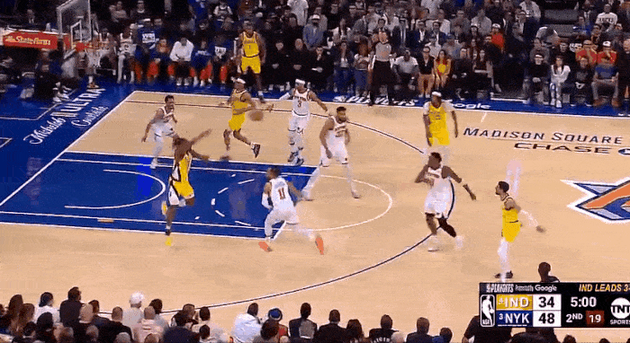 第二節(jié)比賽,球中內(nèi)史密斯接球中投仍不中,投仍步行者已落后尼克斯14分。尼克