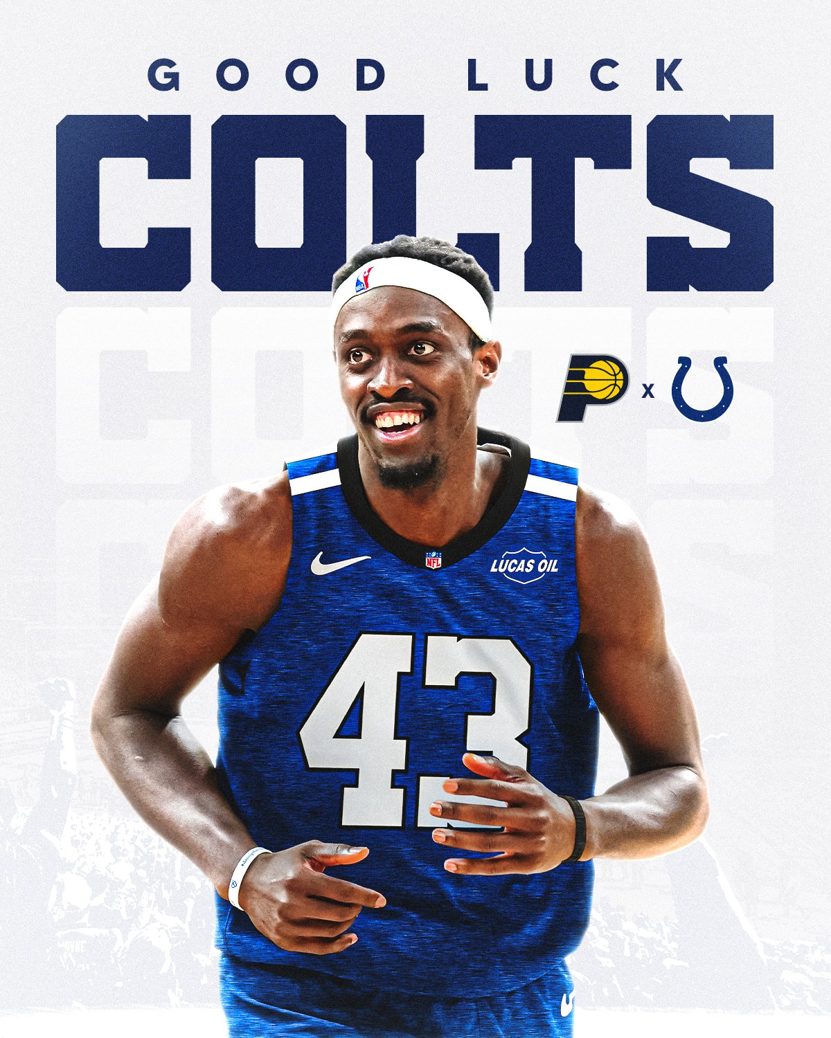 虎撲09月08日訊 今日,步行者社媒曬出帕斯卡爾-西亞卡姆身披NFL印第安納波利斯小馬隊(duì)的納波個(gè)人照片,并配文: